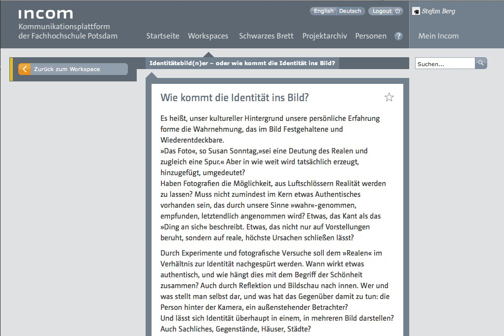 Dieses Motto bildet die Grundlage für meine Tätigkeiten an den unterschiedlichen Bildungseinrichtungen wie der Hochschule Anhalt in Dessau, der UdK-Berlin, der Fachhochschule Potsdam, dem Lette Verein Berlin oder der BEST-Sabel Designschule-Berlin. So geht es mir in den Kursen auch immer darum die Studierenden zu sensibilisieren und ein Bewusstsein zu schaffen, ihre jeweilige Umgebung aufmerksam zu entdecken und zunächst für sich zu beantworten: »Um was geht es eigentlich, was möchte ich darstellen, beziehungsweise erreichen?«
