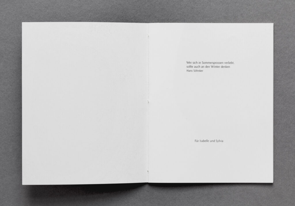 Das Büchlein wurde auf einer Andruck-Offset-Maschine im Duplex Verfahren an der Fachhochschule Potsdam gedruckt. Die Auflage ist als Handpresse im Eigenverlag – edition bergwerke – erschienen.