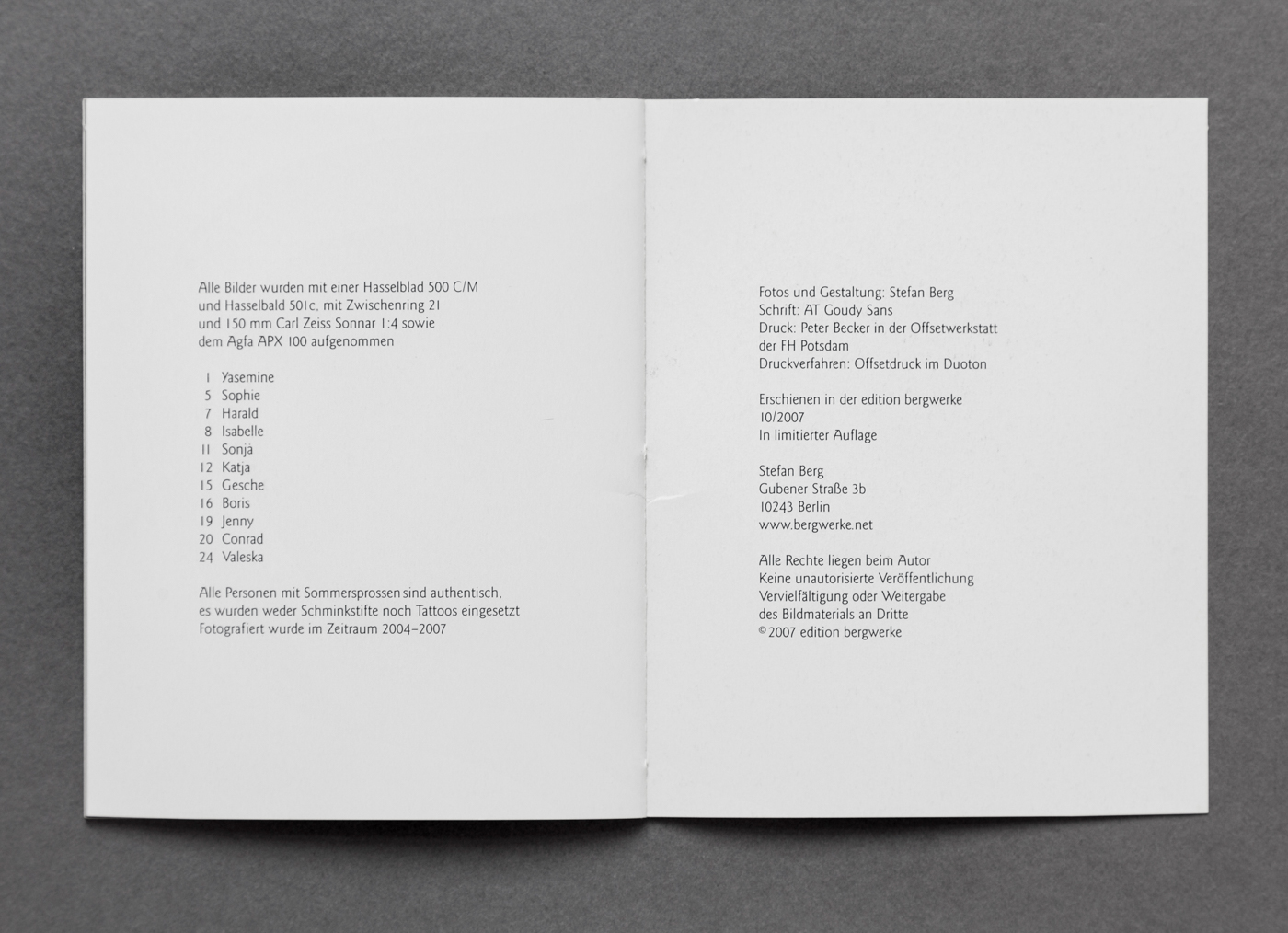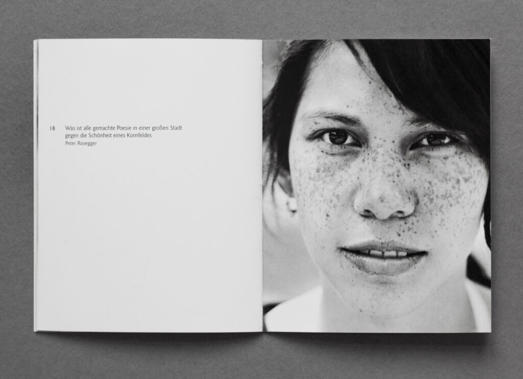 Brochure zu der Arbeit Gesichtspunkte. Die Bilder entstanden in der Zeit von 2004 – 2014 Dank der Offenheit der gefundenen Sommersprossen-Trägerinnen und -Träger.
